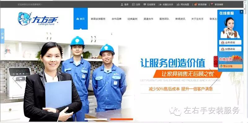 左右手,率先打造国内定制家居安装服务领导品牌,以领先行业的B2B结合O2O模式带动高端定制家居安 装服务行业的发展,业务覆盖了全国各个地区。为客户提供家居安装服务整体解决落地方案。左右手专 注家居安装服务行业研究11年,整合100多家全国高端定制战略联盟品牌资源,并拥有成熟的地面服务系统。
